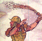 When the cross was erected upright, there was tremendous strain put on the wrists, arms and shoulders, resulting in a dislocation of the shoulder and elbow joints.(Metherall) The arms, being held up and outward, held the rib cage in a fixed end inspiratory position which made it extremely difficult to exhale, and impossible to take a full breath. The victim would only be able to take very shallow breaths.(This may explain why YAHUSHUA made very short statements while on the cross). As time passed, the muscles, from the loss of blood, last of oxygen and the fixed position of the body, would undergo severe cramps and spasmodic contractions.